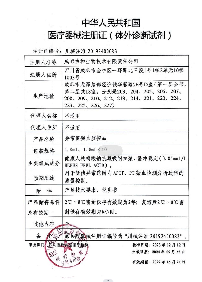 醫(yī)療器械注冊證(體外診斷試劑)